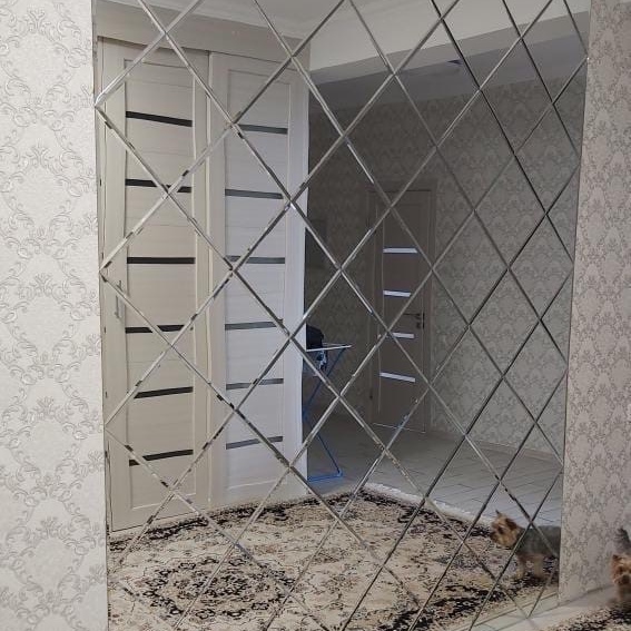 Использована зеркальная плитка "вытянутый ромб" с фацетом.