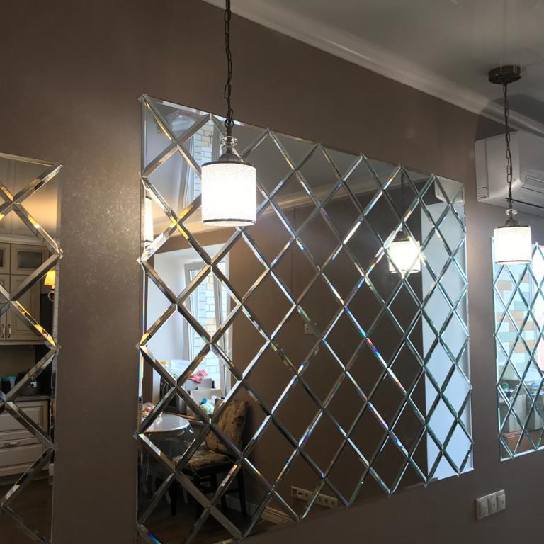 Использована зеркальная плитка "вытянутый ромб" с фацетом.